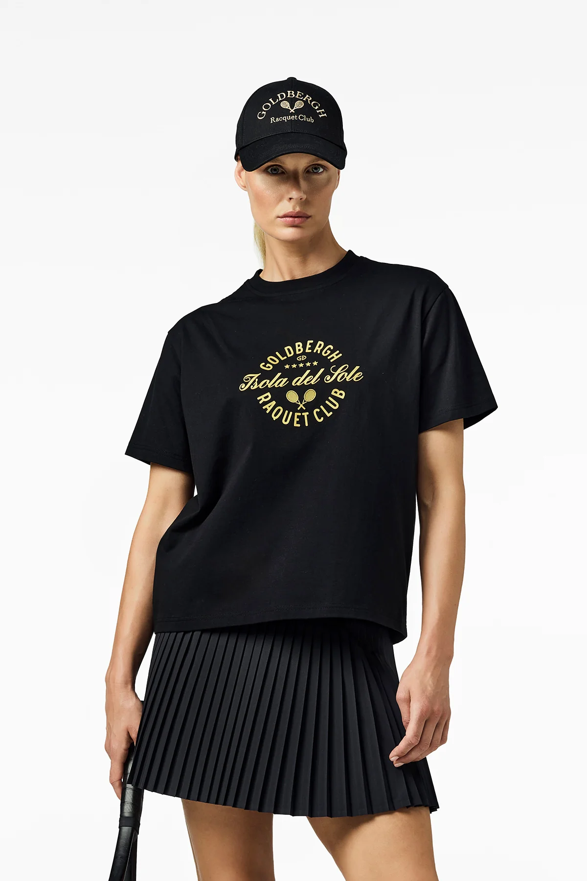 Dámské tričko Goldbergh Aurelia se střihem regular spojuje sportovní minimalismus s výraznou estetikou. Grafika kolekce Isola del Sole s kontrastním potiskem s motivem raket podtrhuje sportovní charakter modelu. Propracované detaily zasazené do klasické formy trička z něj činí ideální volbu pro aktivní den.