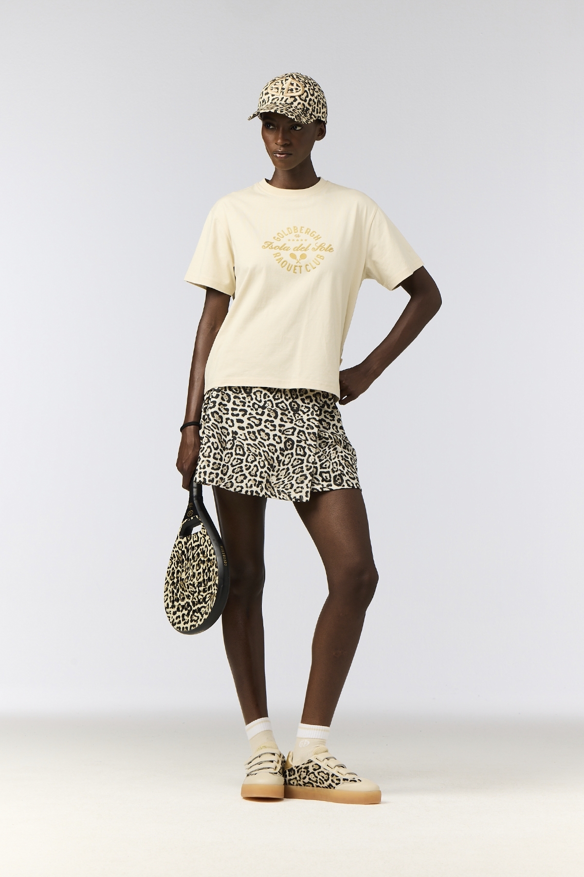 Dámské tričko Goldbergh Aurelia se střihem regular spojuje sportovní minimalismus s výraznou estetikou. Grafika kolekce Isola del Sole s kontrastním potiskem s motivem raket podtrhuje sportovní charakter modelu.