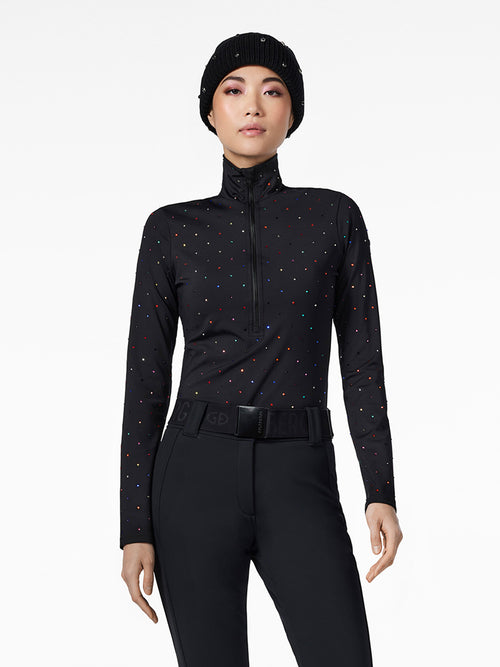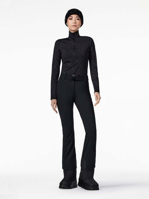 Tento elegantní rolák s polo zipem je skvělou volbou jako základní vrstva lyžařského outfitu, zajistí teplo a pohodlí. Jednoduchý střih jemně kopíruje ženskou siluetu. Je vyroben z pružného materiálu s jemným hladkým povrchem a jemným počesaným vláknem uvnitř, kde udržuje teplo a zajišťuje pohodlné nošení. Antibakteriální úprava udrží Vaše tělo svěží v každé situaci. Rozepínání je do poloviny na praktický, prodloužený polozip. Vyšší stojáček jemně obepíná krk. Na rukávu malé kovové logo Goldbergh. Kamínky mu dodají punc luxusu.