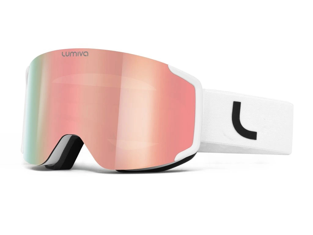 Dopřejte si styl, který na svahu nepřehlédnete. Lyžařské brýle LUMIVA Pulse v elegantní bílé barvě s růžovo-zlatým zrcadlovým sklem spojují moderní design a špičkovou optiku – ideální pro lyžaře i snowboardisty, kteří chtějí skvěle vidět a zároveň vypadat perfektně.